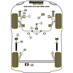 The Black Series from Powerflex is specifically developed for track and trackday use. Unlike road versions, these pads use 95 Shore A hardness polyurethane, providing maximum rigidity. This product, featured in the official Renault Sport catalog for competition, eliminates unwanted spring movement, ensuring a constant ride height for your Renault Clio 172 or 182.